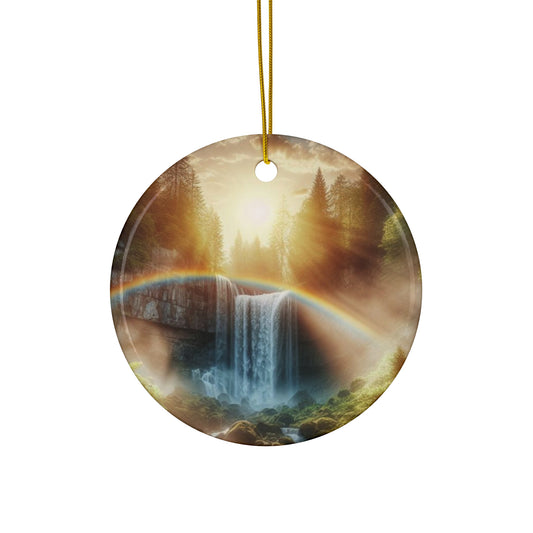 Waterfalls and rainbows in the forest Ceramic Ornament, 4 Shapes