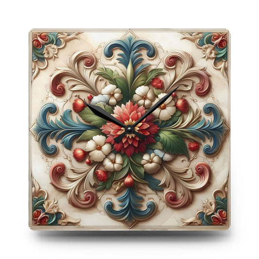 Traditional Tile Art Floral Acrylic Wall Clock – Decorative Home Décor Timepiece