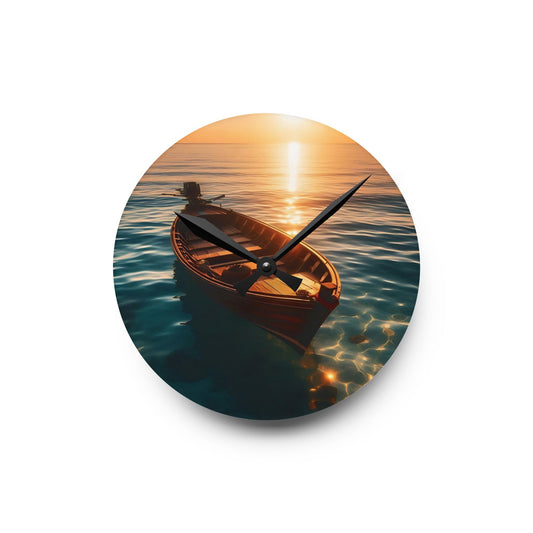 Sunrise and Boat at Sea Acrylic Wall Clock – Nautical Decorative Home Décor Timepiece