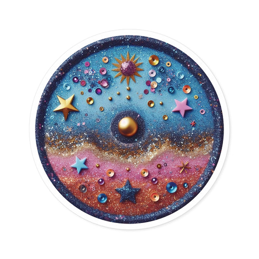 Design as if made with pink and purple coloured sequins Round Stickers, Indoor\Outdoor