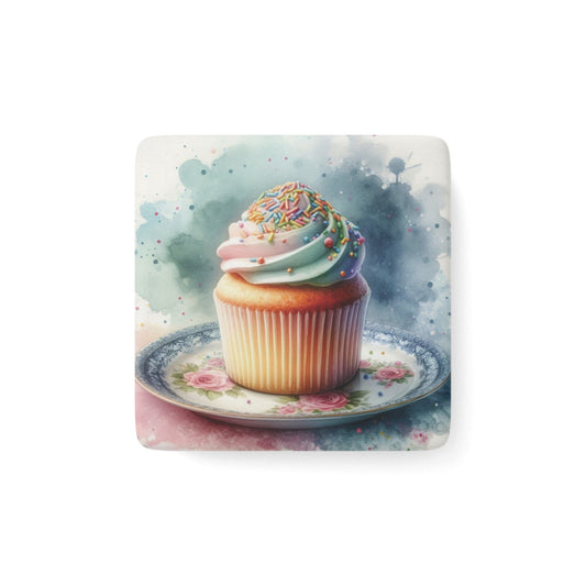 Delicious Creamy Mini Cake Porcelain Magnet – Square Decorative Fridge Magnet for Kitchen