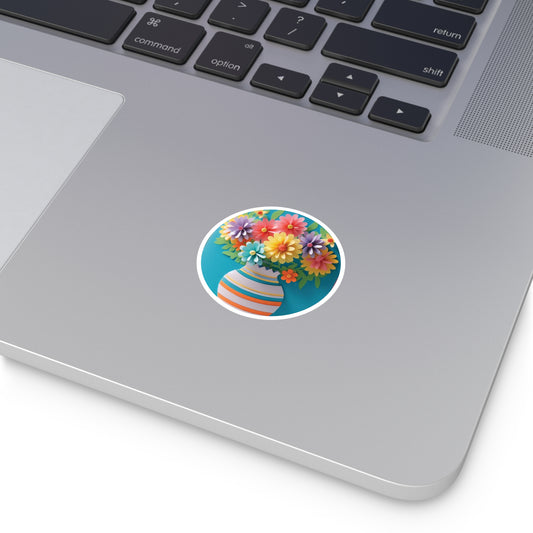 Colorful Flowers in a Vase Round Stickers – Indoor & Outdoor Decorative Vinyl Decals 🌸