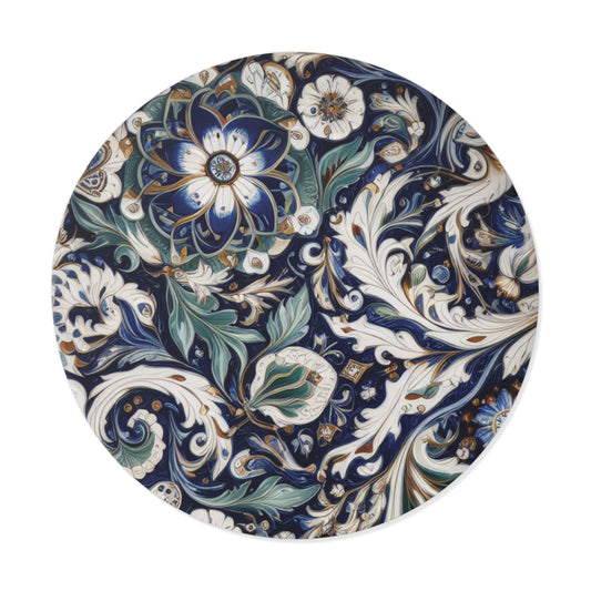 Blue Flower Pattern Round Vinyl Stickers – Decorative Floral Decals